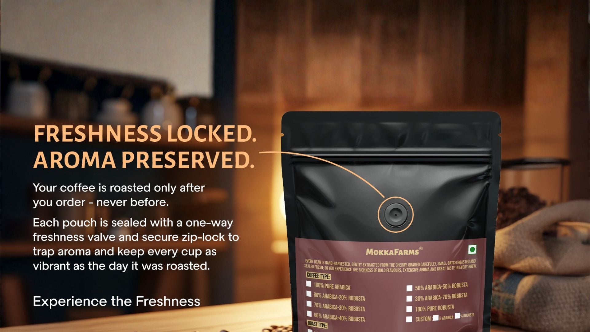 MokkaFarms Coffee is known for its high-quality beans personally selected from estates in the Western Ghats of Karnataka, India, including Coorg and Chikmagalur.