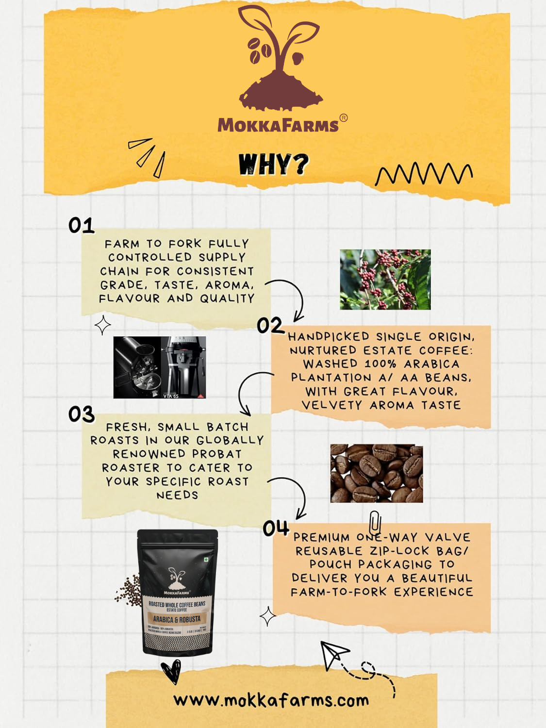 Discover the bold and intense taste of MokkaFarms Premium Ground Coffee – made from 100% pure, sun-dried Robusta beans handpicked from the rich plantations of Coorg and Chikmagalur in Karnataka’s Western Ghats.
